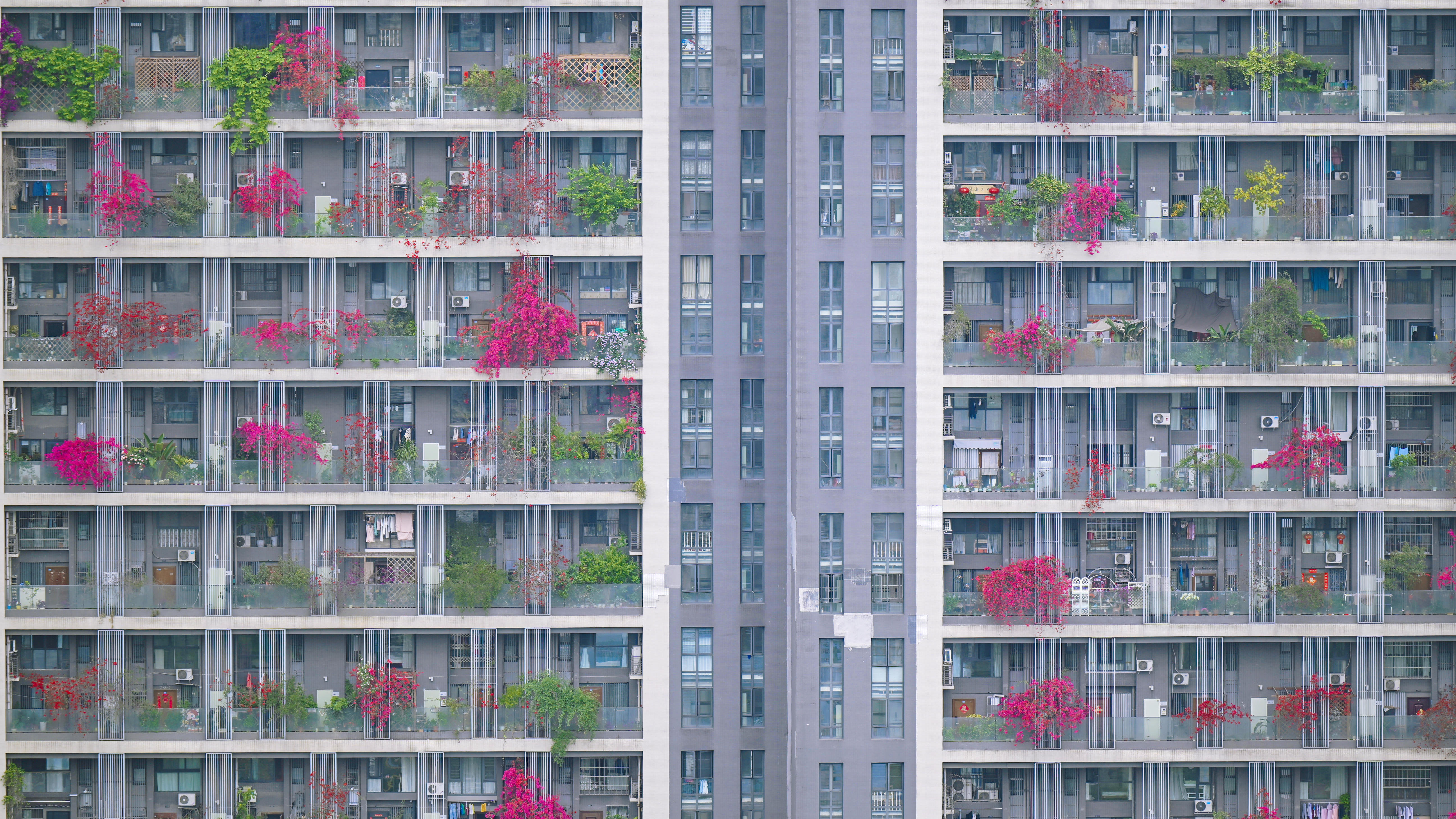 紫红色点亮整栋楼 成都这座“三角梅大楼”户户见花