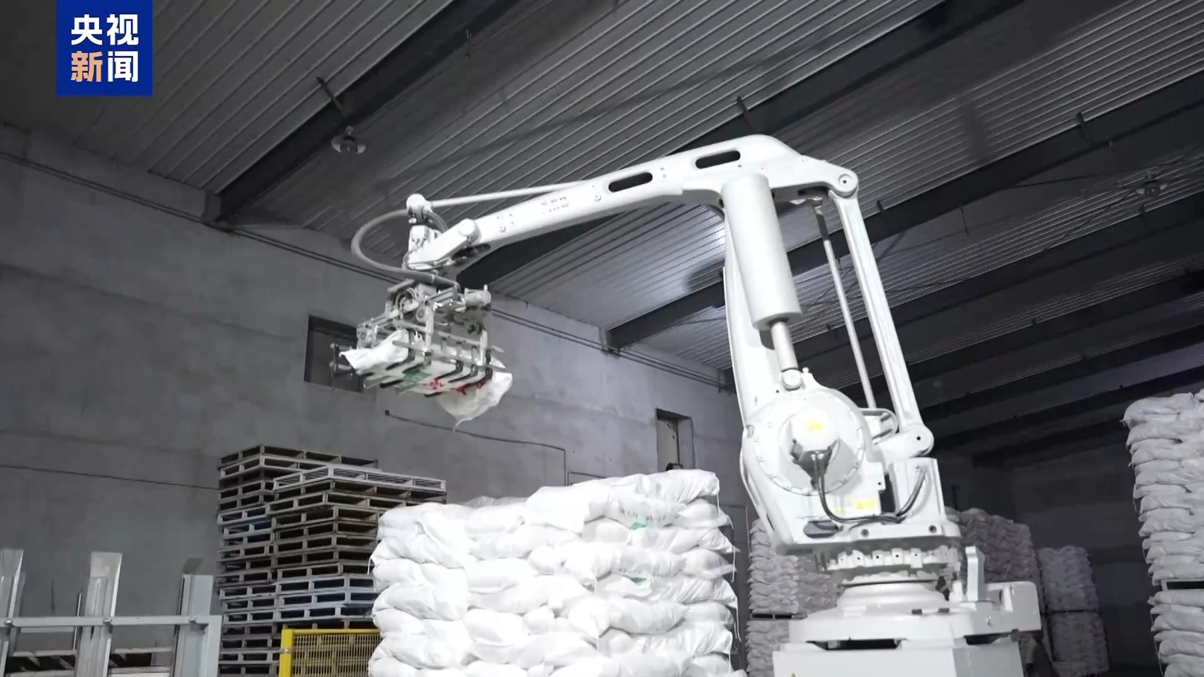 在这个生产线上,工人有了数字“工友”。面粉的分拣靠的是自动码垛机,也就是一个超级机械手来完成。而面粉“坐着”螺旋式的输送机,进入到分拣环节。