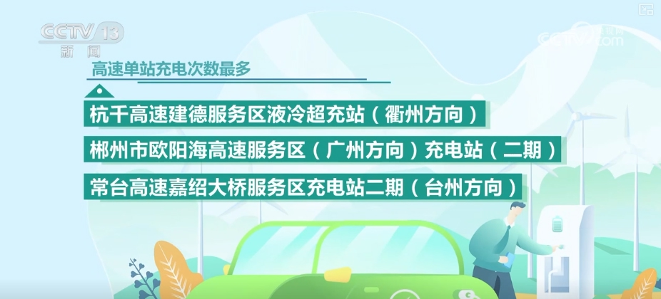 高速单站充电次数最多的是杭千高速建德服务区液冷超充站(衢州方向)、郴州市欧阳海高速服务区(广州方向)充电站(二期)、常台高速嘉绍大桥服务区充电站二期(台州方向)。