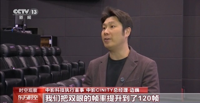 中影科技执行董事、中影CINITY总经理 边巍:我们把双眼的帧率提升到了120帧,也就是说每一秒钟每只眼睛前都有120帧的画面信息,这样就能非常明显地解决原来画面在快速移动、慢速移动或者是相对移动过程中出现的画面的抖动,模糊卡顿等问题。我们也应用了最先进的激光技术,把我们的亮度比普通的银幕当时的放映亮度提高了5~7倍,这样整体的沉浸式的观影效果就非常好。