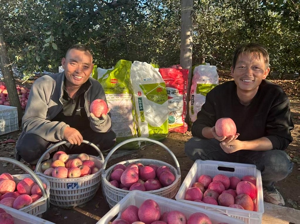 延安洛川县果农展示采摘的苹果。图源:新华社
