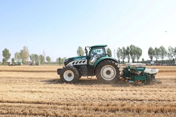 无人驾驶播种机在宝鸡市一处无人农场进行作业。图源:新华社