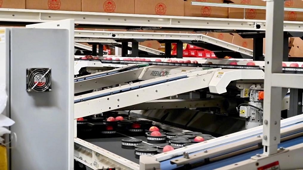 延安洛川县一处苹果智能选果线正智能分选。图源:新华社