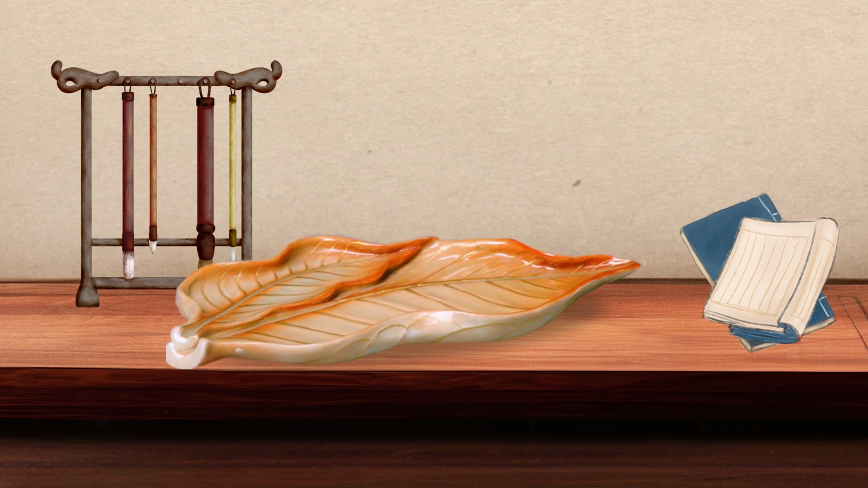 一起认识黄釉描金秋叶形笔掭(tiàn)