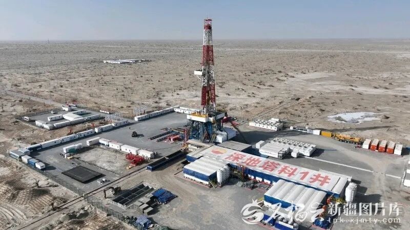 部署在塔克拉玛干沙漠腹地的深地塔科1井完钻井深10910米,成为亚洲第一垂深井。塔里木油田供图