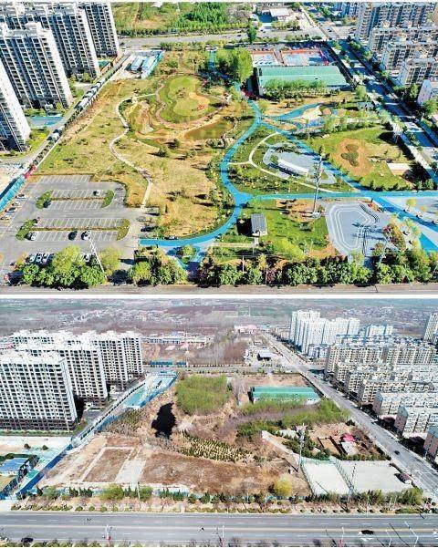 悦动公园改造前后对比图。 临城县住房和城乡建设局供图
