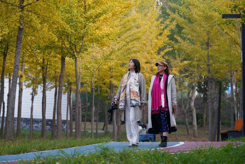 10月30日,附近居民在圣景公园银杏林游玩。徐少立摄