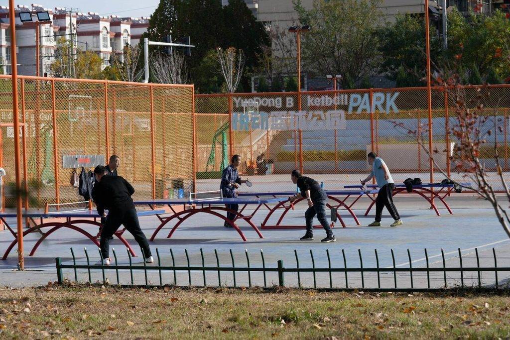 11月10日,附近居民在悦动公园打乒乓球。徐少立摄