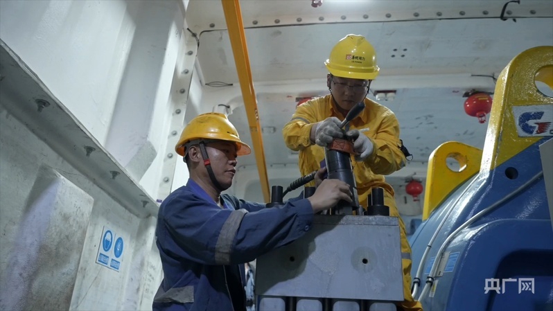 李亚雄与同伴对风机内部部件进行巡检维护(央广网发 受访者供图)