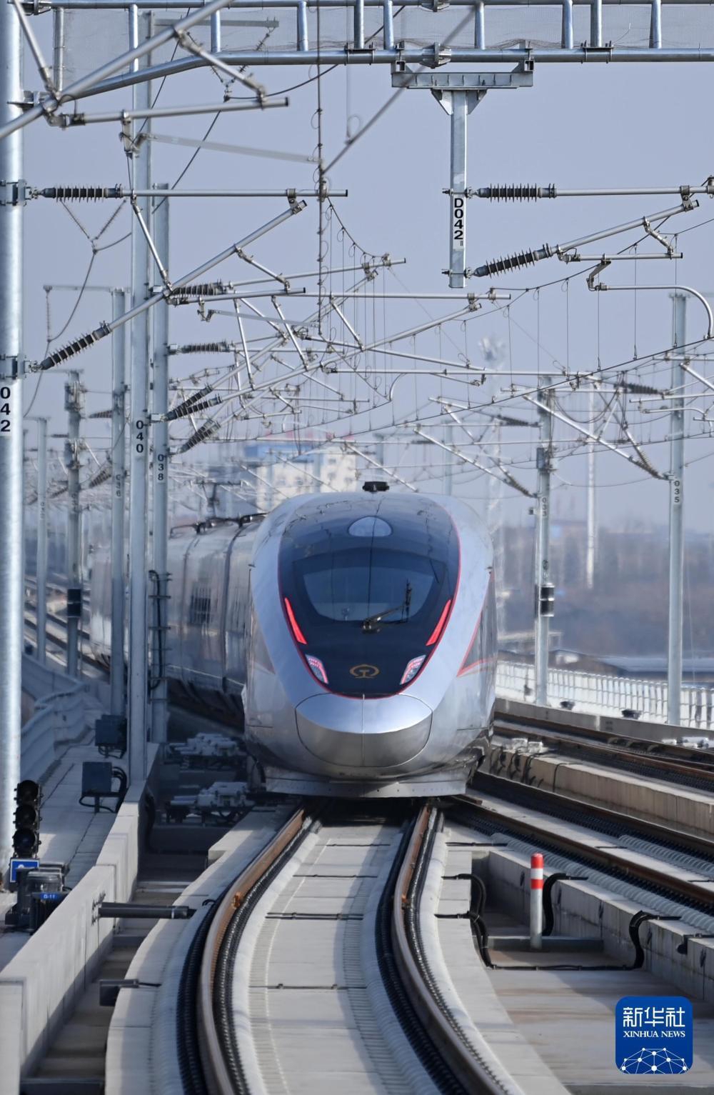 2025年12月26日,西安开往延安的西延高铁首发C9312次列车从富平南站驶出。新华社记者 李一博 摄