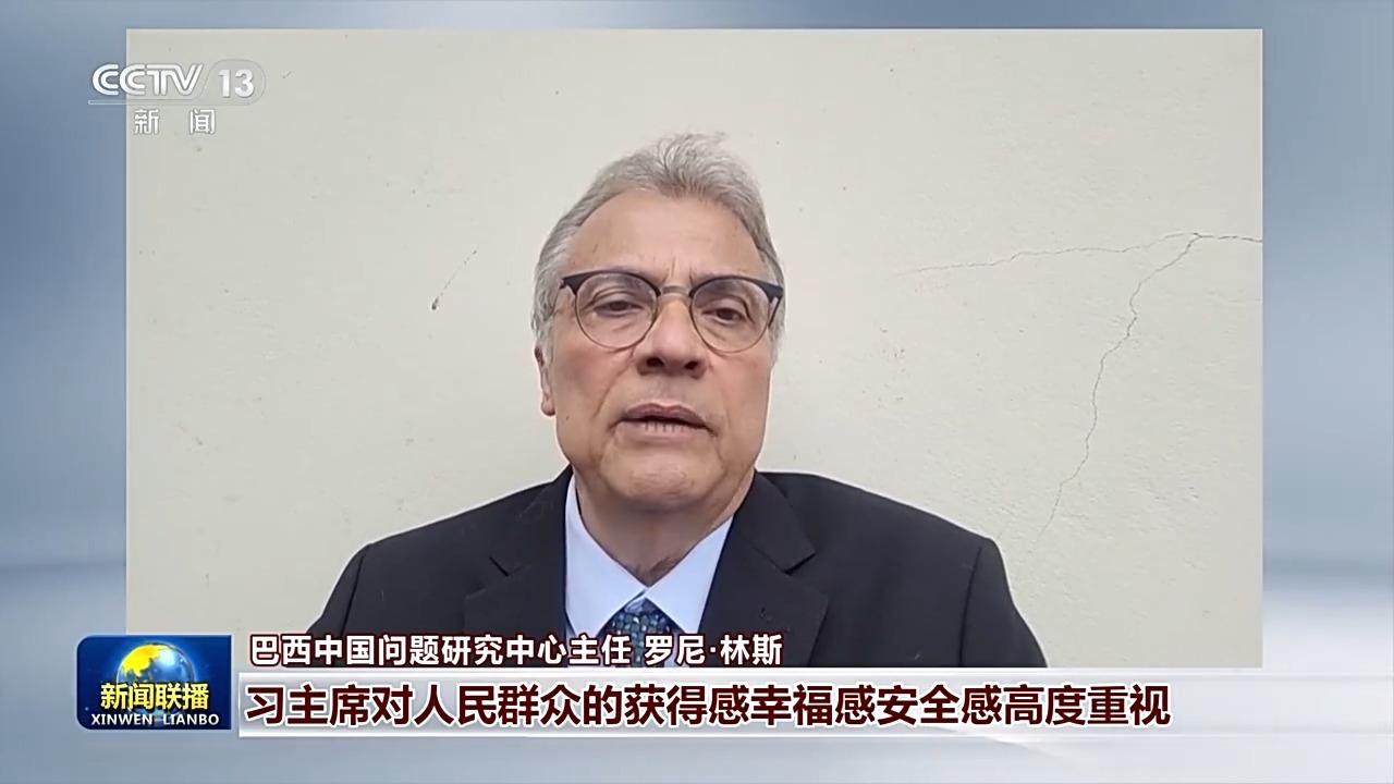 巴西中国问题研究中心主任 罗尼·林斯:习近平主席发表的新年贺词很有感染力。他说民生无小事,枝叶总关情,习主席对人民群众的获得感、幸福感、安全感高度重视。将中国式现代化、共同富裕等宏伟愿景落到切实可行的民生措施,例如育儿补贴、适老化改造和新就业群体权益保障等,这些都体现了中国坚持以人民为中心的发展思想。