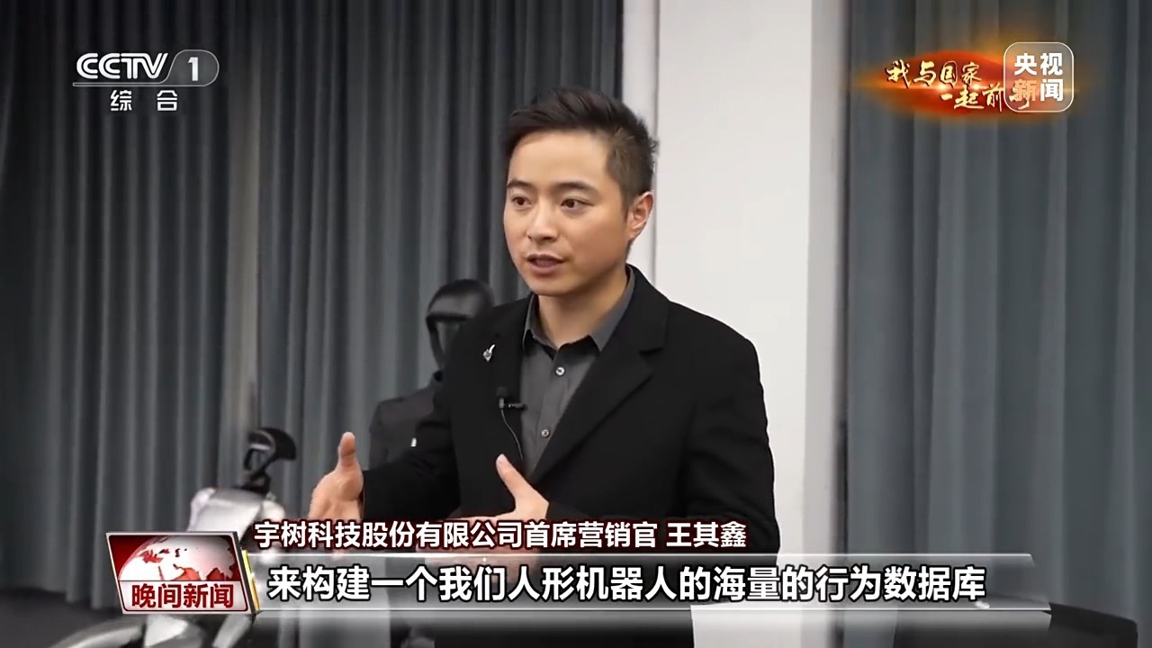 宇树科技股份有限公司首席营销官 王其鑫:基于人类的一些行为视频或者动作捕捉数据来构建一个行为数据库。比如说我们去参加人形机器人运动会的时候,需要对机器人做大量的测试。可能之前想的是工程师在办公室里面敲敲代码,然后改改结构,但实际上我们的工程师都会一拥而上跟着机器人一起去跑,看机器人的状态、速度、响应等,然后来判断哪里需要修复,哪里需要调整。