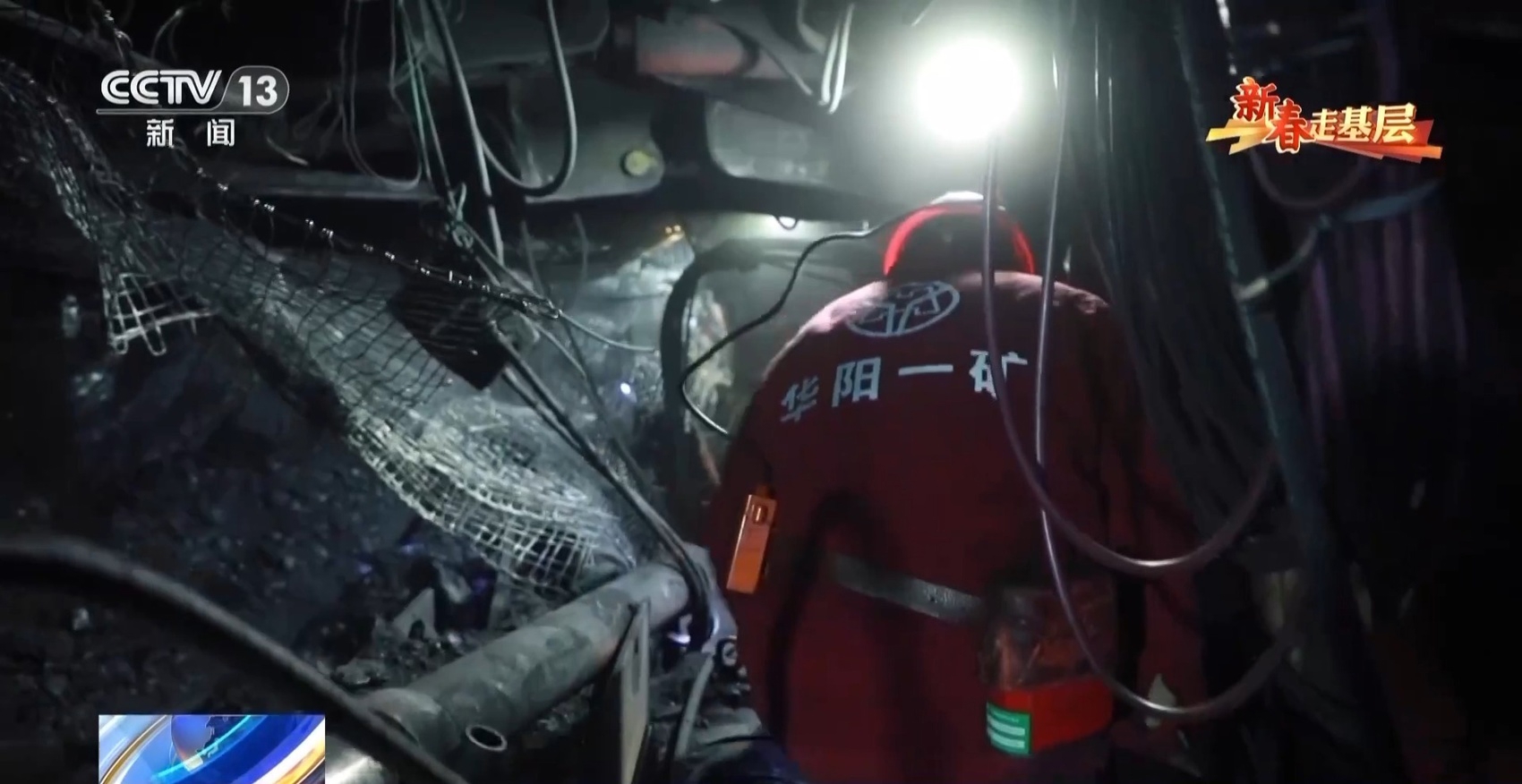 总台记者 崔肖冉:现在我们终于到了这个采煤工作面,距离地面的垂直距离大概有400多米,现在我们要钻过这个铁桥,来到采煤的一线。