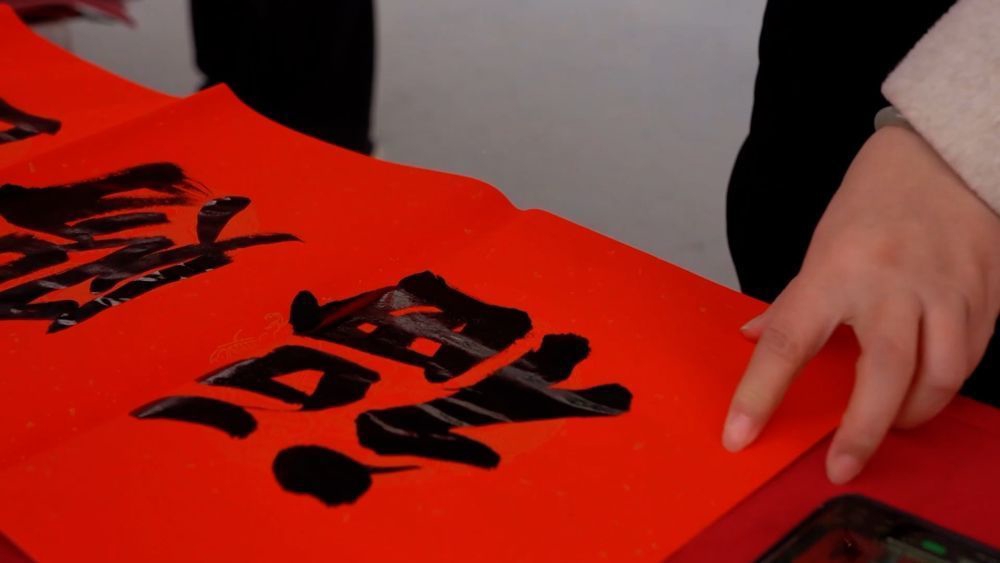 与热闹的舞台相呼应,广场另一侧的义诊、写春联、普法宣传等志愿服务活动同步展开。夏县硬笔书法家协会的志愿者们挥毫泼墨,一副副承载着吉祥祝福的春联,一个个喜庆的“福”字跃然纸上,吸引了众多村民排队等候。