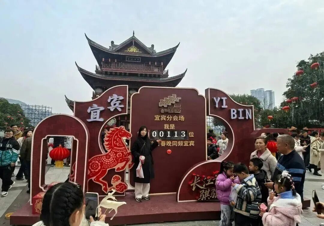 宜宾分会场以“立上游”为主题惊艳亮相,让全球中华儿女看到了“万里长江第一城”的美丽与活力。大年初一,在总台春晚宜宾分会场拍摄地,红灯笼点缀着冠英古街、合江门广场等地,年味十足。随着众多游客纷至沓来,景点变得热闹非凡。在跟着春晚游宜宾打卡点,游客们纷纷用镜头与春晚“同框”,留下珍贵时刻。
