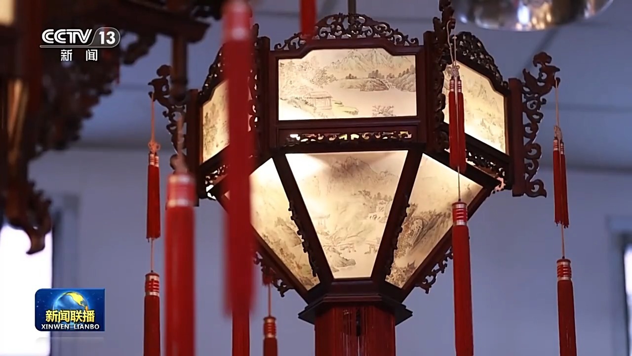 北京宫灯市级代表性传承人 翟玉良:一只宫灯要用100多块木头,几百道工序,包括这个地方,跟古建筑的雀替完全是一样的。