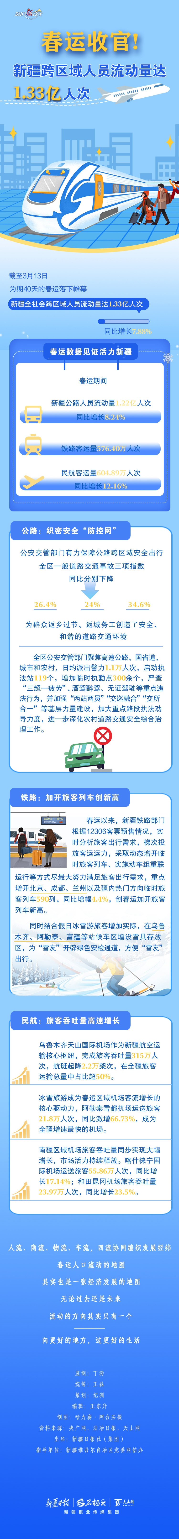 数说“新”变化丨春运收官! 新疆跨区域人员流动量达1.33亿人次