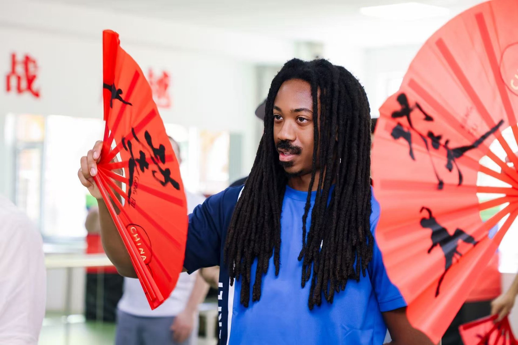 “教练向我们展示了一些基本的动作,还有要如何快速打开和收起。我就一直摆弄它,我想我找到窍门了。我迫不及待地想把这段经历告诉家人,这真的令人兴奋,我从每个人身上都学到了很多。所以我真的很感激。我很欣赏中国,因为这个地方很棒。”