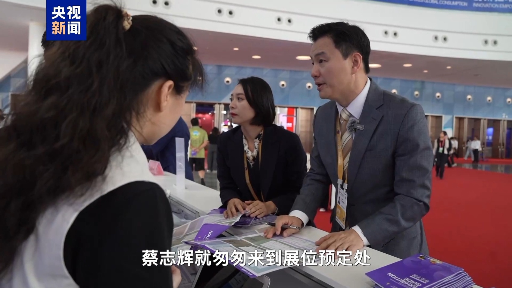参展商 蔡志辉:第一次来消博会的时候,我被客户的热情,还有他们的购买力都“吓”到了,因为当时我们的摊位只有18平方米,在后排角落的一个位置,我以为都没有人过来看,怎么知道好多人过来买产品,甚至把名片盒都塞爆了。第三届的时候,已经进行了一些落地合作;第四届,跟本地的一些供应链开始合作;到第五届更好了,和博鳌的乐城,还有中免集团达成合作协议。