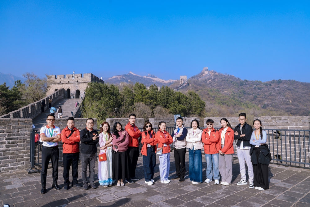 ↑ 4月14日,中越青年在北京参观八达岭长城。
