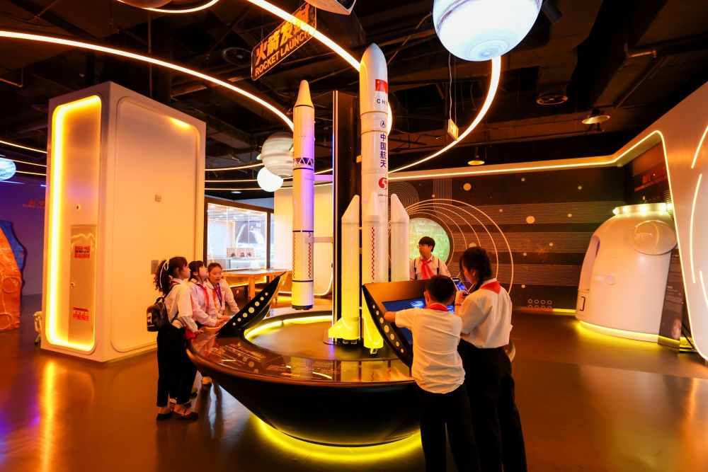↑ 4月14日,在中国宋庆龄青少年科技文化交流中心,越南青年“红色研学之旅”之“不忘初心”研学营少先队分团成员进行科技体验。
