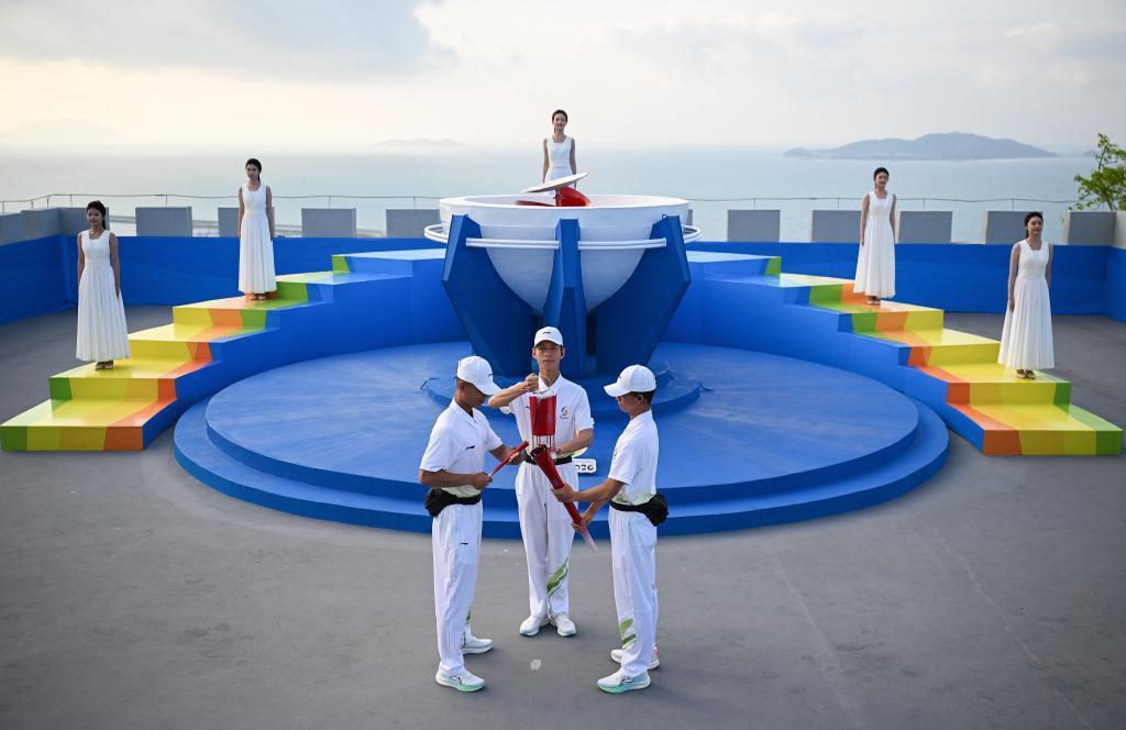 3月30日,第六届亚洲沙滩运动会火种采集仪式在海南三亚举行。新华社记者 蒲晓旭 摄