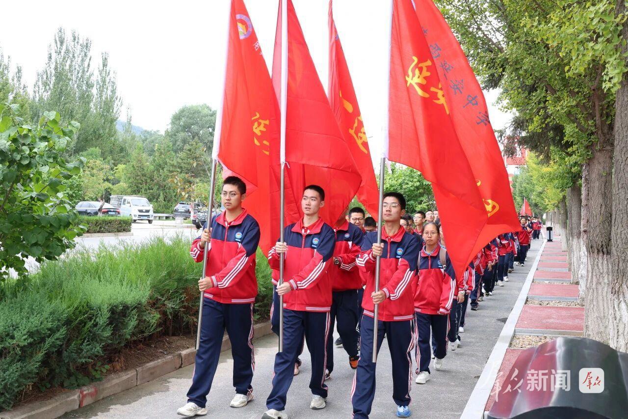 延安中学连续23年开展红色远足研学旅行活动。图为去年9月20日,学生徒步前往杨家岭革命旧址等地(资料照片)。