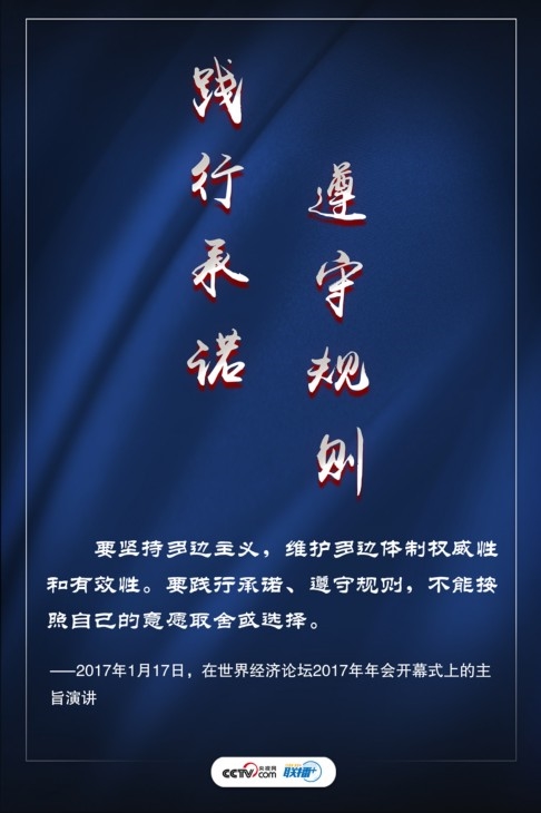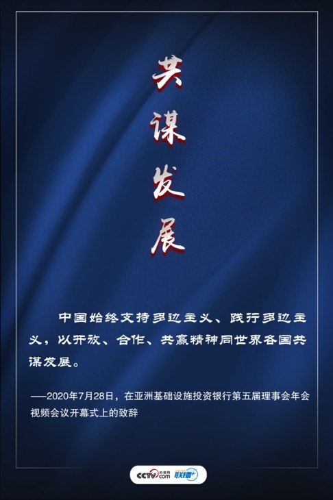 “中国始终支持多边主义、践行多边主义,以开放、合作、共赢精神同世界各国共谋发展。”